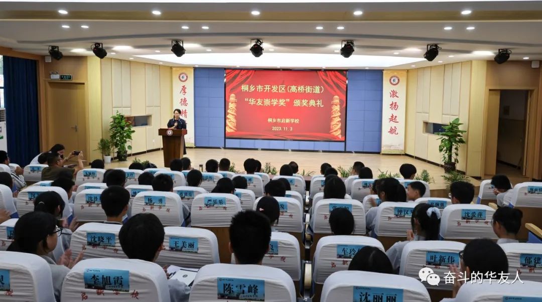 錦繡年華,友你同行;崇智尚德,學(xué)而致遠(yuǎn)。近日,2023年桐鄉(xiāng)經(jīng)濟(jì)開發(fā)區(qū)(高橋街道)“華友崇學(xué)獎”頒獎典禮在啟新學(xué)校報告廳舉行。