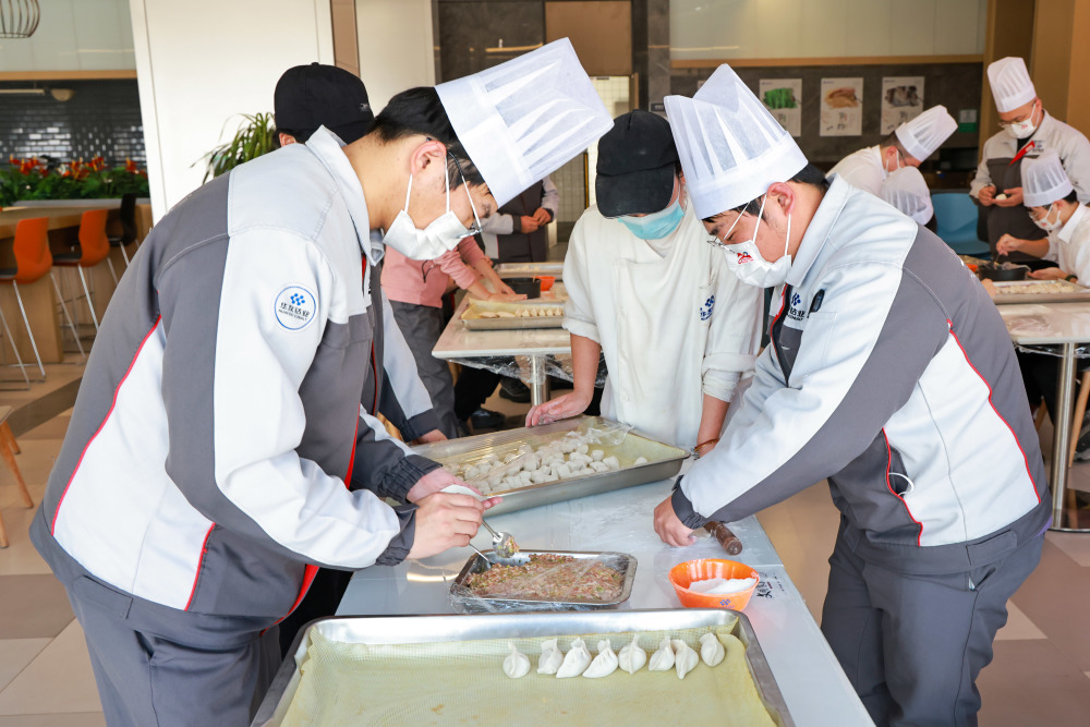 隨著活動的進行,大家動作越來越嫻熟,包出來的餃子也創意滿滿,各有特色。不一會兒,一個個白胖胖的餃子鋪滿了餐盤。等待餃子出鍋的過程中,大家相互間就入職以來的所獲、所感進行回顧和交流。