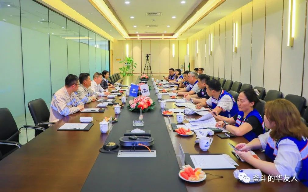 黃善云副總經理代表印尼鎳產業集團向謝偉副行長一行蒞臨指導表示歡迎,對印尼華越等項目給予的關心支持表示感謝,同時介紹了項目的建設發展歷程、戰略意義及當前的運營情況。華越項目充分貫徹“綠色+生態”設計理念,集有色金屬冶煉和化工提煉于一體,具有低成本、低能耗、綠色環保、低碳排放等多重優勢。華越的建設和投產,創造了當前世界規模最大、建設速度最快、達產時間最短的行業紀錄。項目于今年9月刷新了單月產能超設計產能40%以上的新紀錄,這是銀企深入合作產出的豐碩成果,希望未來浦發銀行一如既往的支持華友印尼項目建設發展,共同為新能源鋰電事業賦能蓄勢。