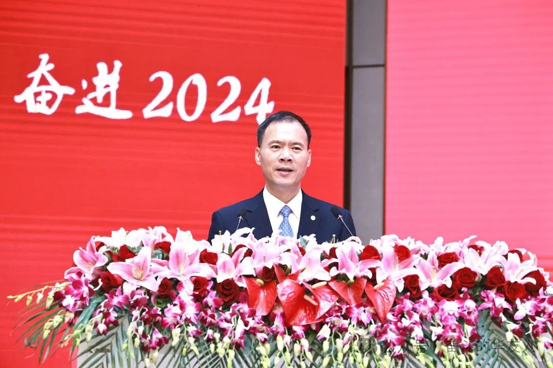 會(huì)議全面總結(jié)了2023年工作,分析了推動(dòng)公司高質(zhì)量發(fā)展面臨的形勢(shì)和需要牢牢把握的規(guī)律性認(rèn)識(shí),部署了2024年重點(diǎn)工作。陳總講到,2023年是十年任務(wù)五年完成的中間一年,船到中流,不進(jìn)則退;人到半山,不上則下。奮進(jìn)2023,集團(tuán)上下在陳雪華董事長(zhǎng)的帶領(lǐng)下,把握階段特征,搶抓發(fā)展機(jī)遇,貫徹全面統(tǒng)籌、強(qiáng)化保障、優(yōu)化結(jié)構(gòu)、管控風(fēng)險(xiǎn)的經(jīng)營(yíng)思路,實(shí)現(xiàn)了從中國(guó)民營(yíng)企業(yè)500強(qiáng)向中國(guó)企業(yè)500強(qiáng)的歷史性跨越,收獲了爭(zhēng)先創(chuàng)優(yōu)、提質(zhì)進(jìn)位的巨大成果。具體體現(xiàn)在以下五個(gè)方面: