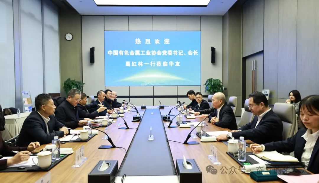2月26日,中國有色金屬工業協會黨委書記、會長葛紅林蒞臨集團總部調研。集團董事長陳雪華熱情接待。