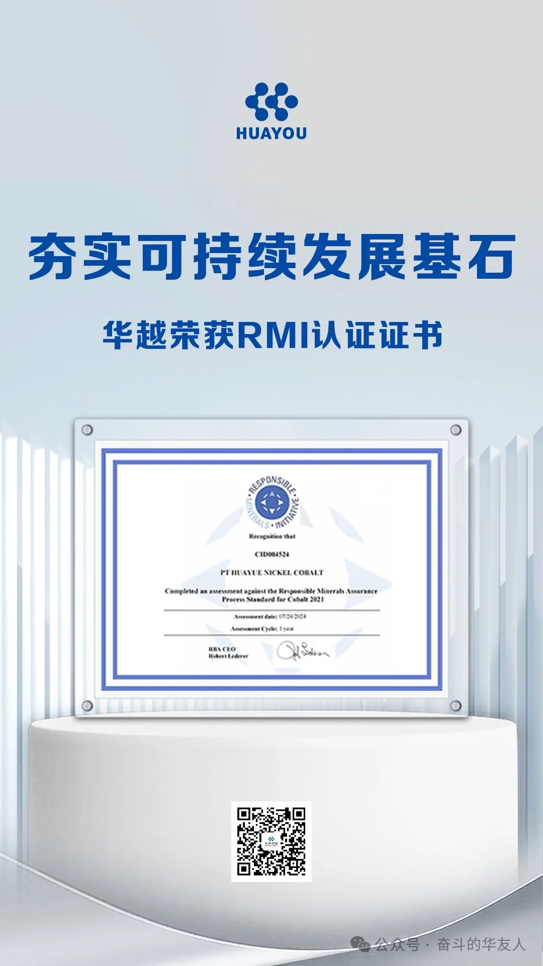 近日,華越鎳鈷(印尼)有限公司獲得負(fù)責(zé)任礦產(chǎn)倡議(Responsible Minerals Initiative, RMI)認(rèn)證,標(biāo)志著公司在負(fù)責(zé)任礦產(chǎn)供應(yīng)鏈管理和 ESG 體系治理方面的努力得到了國(guó)際權(quán)威機(jī)構(gòu)的認(rèn)可,進(jìn)一步提升了公司的行業(yè)地位,推動(dòng)綠色、可持續(xù)的礦產(chǎn)供應(yīng)鏈建設(shè)。