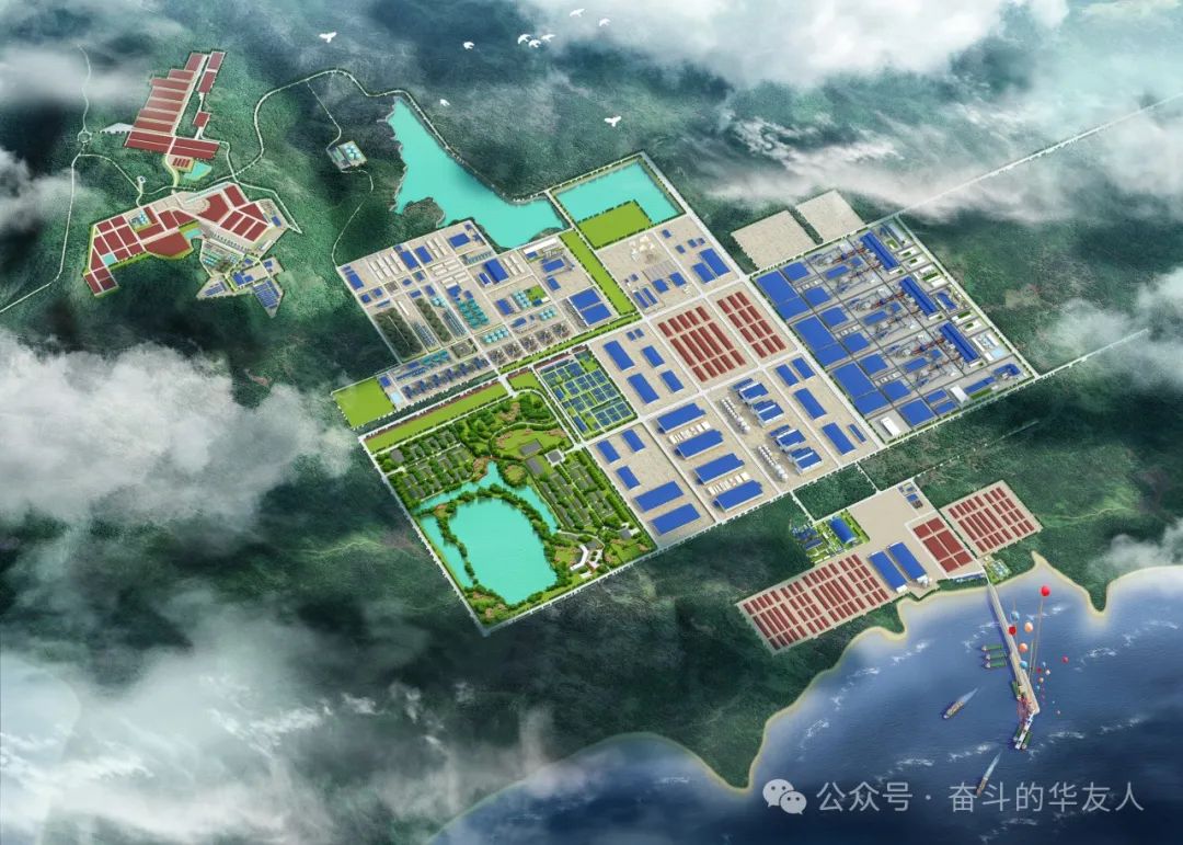2024年11月,園區開始建設施工,12月份對生產區域開始場平工作。園區規劃了生產區、生活區、電廠、碼頭、公輔設施五大功能區,其中一期規劃高壓酸浸濕法冶煉、火法、前驅體、鋰鹽、正極材料等生產項目,并計劃在2030年,建成從礦山到電池材料再到電池回收的鋰電池閉合產業鏈。
